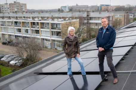 Dankzij dakisolatie en het plaatsen van ruim honderdtwintig zonnepanelen op het dak zitten de bewoners van de Mankesstraat in de Haagse wijk Benoordenhout er een stuk warmer bij deze winter. Judy Verschoor (67) en Gerhard van Roon (55) van de Vereniging van Eigenaren (VvE) Mankesstraat 1-83 kregen het ‘door eerlijk te zijn’ voor elkaar om alle neuzen dezelfde kant op te krijgen. “We hebben goed de tijd genomen. Zo hebben we vaak informatiebijeenkomsten gehouden en nieuwsbrieven gestuurd. Doorduwen is het laatste dat je moet willen”, zegt Van Roon.