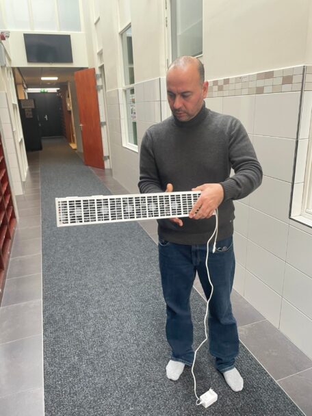 Naast zonnepanelen, warmtepompen en Climate Boosters hangt er in de moskee ledverlichting en is er vloerverwarming. ‘Ik vind ons dus ook echt een groene moskee! We zijn van het gas af, maar ik wil het liefst dat we volledig energieneutraal zijn. Ons verbruik van energie wordt nu nog niet volledig gedekt door de zonnepanelen. Ach, we blijven bezig met verduurzamen. Daar zijn we nog lang niet klaar mee. Je kan blijven verduurzamen totdat je erbij neervalt geloof ik.’ grapt Kacem.